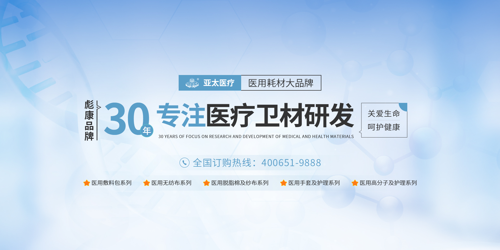 亞太始終專注于一次性醫(yī)療器械、衛(wèi)生材料、高分子及敷料產(chǎn)品的研發(fā)、生產(chǎn)和經(jīng)營,為人類健康事業(yè)的發(fā)展帶來深遠(yuǎn)的意義